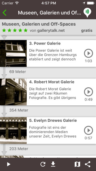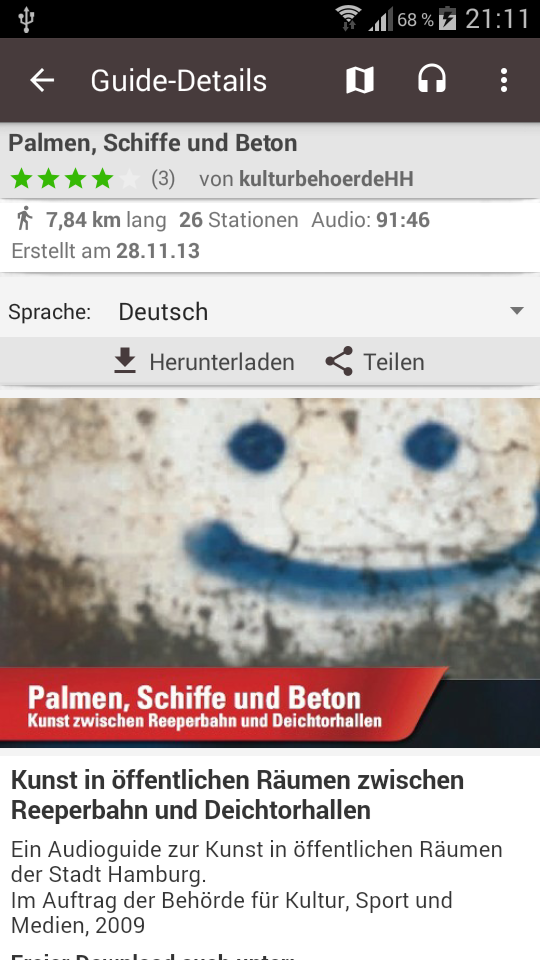 - Kostenpflichtige Audioguides können vor dem Kaufen angesehen werden und es kann in jede Station 30 Sekunden reingehört werden.