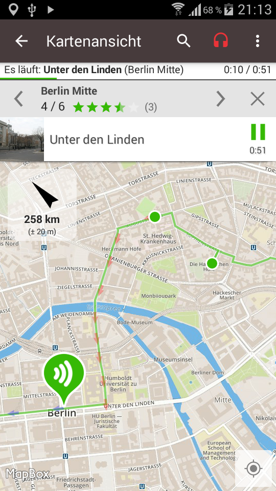 - Wenn man mehr hören möchte, muss man den Audioguide kaufen. Das geht auf der Website oder in der Android-App über PayPal, bei der iPhone-App sehr einfach über das In-App-Payment, für das man nur seine Apple-ID benötigt.